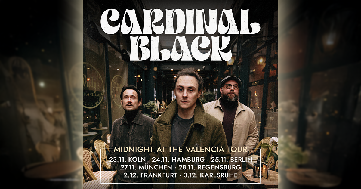 Die walisische Blues-Rock-Sensation Cardinal Black bringt ihre mitreißende Live-Show ab November erstmals auf ausgedehnte Deutschland-Tournee. Auf Grund der hohen Nachfrage hat das Trio um Frontmann Tom Hollister, Gitarrist Chris Buck und Drummer Adam Roberts die Deutschland-Tournee erweitert: Auf die Clubshows im November und Dezember 2025 folgen im Februar und März 2026 fünf zusätzliche Konzerte in Dortmund (27.2.), Wissen (28.2.), Leipzig (2.3.), Aschaffenburg (3.3.) und Freiburg (4.3.).