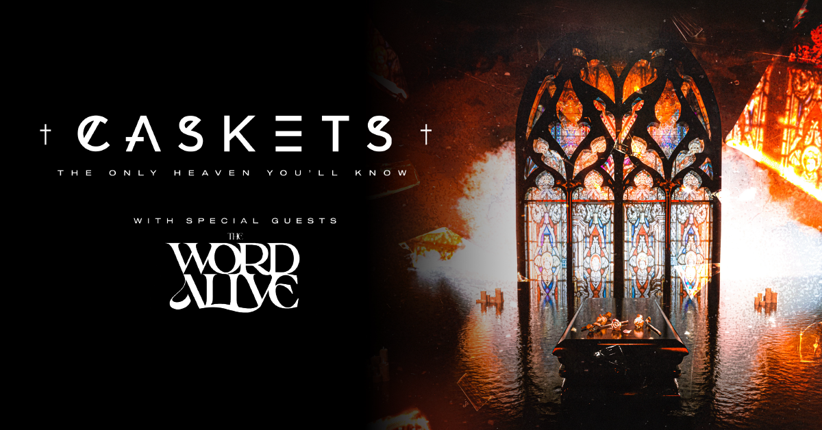Ihr moderner Post-Hardcore-Sound mit Einflüssen aus Alternative Rock hat die britische Band Caskets innerhalb ihrer Szene schlagartig bekannt gemacht. Das Debütalbum „Lost Souls“ sammelte auf Spotify seit Release im August 2021 insgesamt 244 Mio. Streams und beinhaltet mit „Glass Heart“, „Lost In Echoes“ sowie „Drowned In Emotion“ ihre bisher drei größten Hits. Neben Touren in den USA sowie Europa im Vorprogramm von Bands wie Bad Omens, Normandie, Set It Off, Bless The Fall und vielen mehr, spielten Caskets bereits auf Festivals wie dem Download, Slam Dunk und Aftershock Festival. Nach ausverkauften Shows im März 2025 kommen die Briten Ende des Jahres erneut nach Deutschland und werden im Zeitraum vom 01. bis 06. Dezember drei Headline-Shows in München, Dortmund sowie Hannover spielen. Support ist die Hardcore-Band The Word Alive aus Phoenix, Arizona.