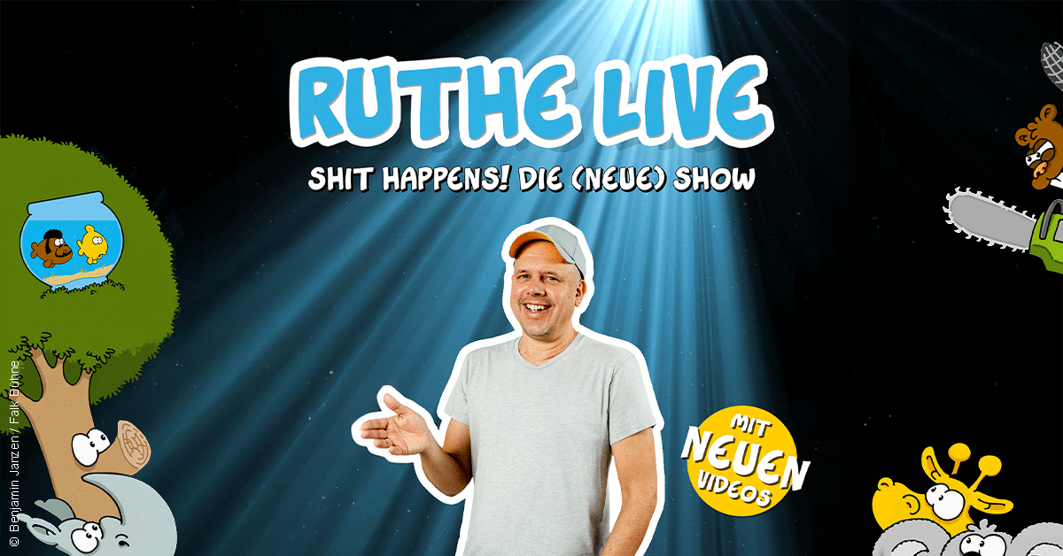 Shit happens, again - Ralph Ruthe wieder auf Tour! Deutschlands erfolgreichster Cartoonist steht endlich wieder auf der Bühne! Ein Cartoonist auf der Bühne Was macht der da? Das, was jeder gute Komiker auch tut: Menschen zum Lachen bringen! In seiner neuen Show verbindet Ralph Ruthe einzigartig Witzbilder, Animationsfilme, Lesung und Musik zu einer Live-Cartoon-Comedy-Show, oder einer Live-Comedy- Cartoon-Show. Er zeigt nur das Beste aus seinem Humor- und Figuren-Universum und ganz viel Neues, von kleinen Alltagsbeobachtungen bis hin zu großen politischen Zusammenhängen. Es wird Welt-Premieren brandneuer Folgen von Ruthes Erfolgsserien „Flossen“, „HNO-WG“, „Biber und Baum“ und den „Werbeparodien“ geben. Ruthe schafft es immer wieder, den alltäglichen Irrsinn pointiert, intelligent und schreiend komisch in einem Bild (oder Video) festzuhalten. Kein Cartoonist veröffentlicht in einer derart hohen Schlagzahl seit so langer Zeit so viel neues Material. Dies spiegelt sich auch in den Verkaufszahlen seiner Bestseller-Bücher wider. Millionen von PendlerInnen kennen seine Cartoons außerdem von den U-Bahn-Screens, aus dem Fernsehen (Auftritte bei Sträter/ARD und TV TOTAL/Pro7). Auf seinen Social Media-Kanälen folgen ihm seit Jahren rund vier Millionen Fans. An Ralph Ruthe kommt man nicht vorbei und wer ihn jetzt auch live erleben möchte, der hat bald ab Herbst 2025 endlich wieder Gelegenheit dazu... und mit etwas Geduld gibt es noch etwas ganz Besonderes dazu: Alle (!), die sich anstellen, bekommen eine von Ruthe persönlich gefertigte signierte Zeichnung.... Wir wünschen jetzt schon viel Vergnügen!